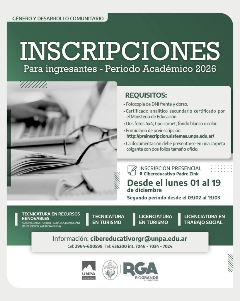 Vecinas y vecinos de Río Grande ya pueden postularse para comenzar sus estudios universitarios el próximo año a través de la modalidad a distancia de la Universidad Nacional de la Patagonia Austral.