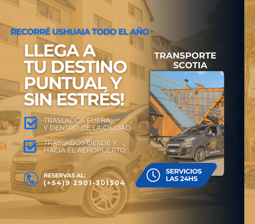 Transporte Scotia ofrece traslados turísticos en Ushuaia pensados para que disfrutes cada destino sin complicaciones. Con servicio confiable y cómodo, te llevan a los principales puntos turísticos como Cerro Castor y Laguna Esmeralda, ideal para llegar, recorrer y vivir cada experiencia al máximo.